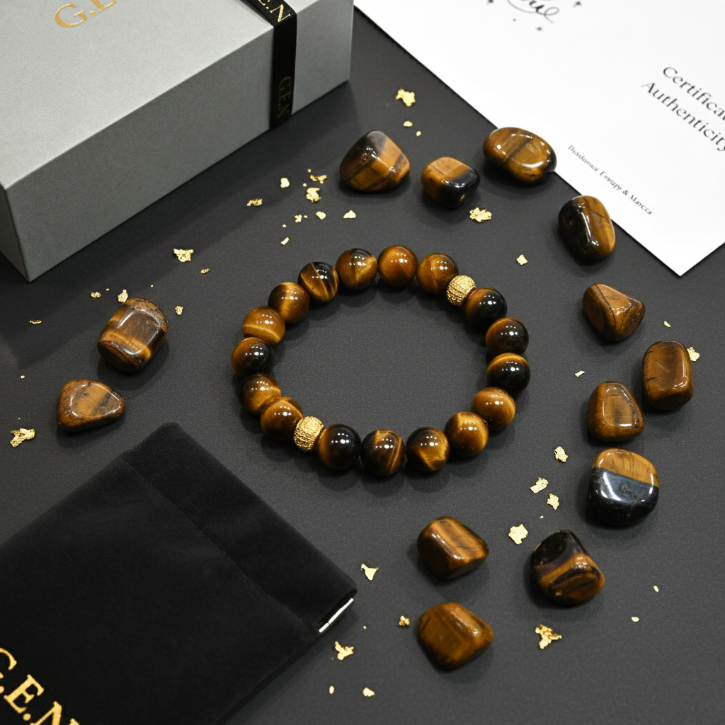When anxiety, self-doubt, or financial struggles weigh you down, The Dust Monarch by G.E.N is your talisman of strength. Crafted from handpicked golden tiger’s eye stones, this powerful bracelet is designed to: